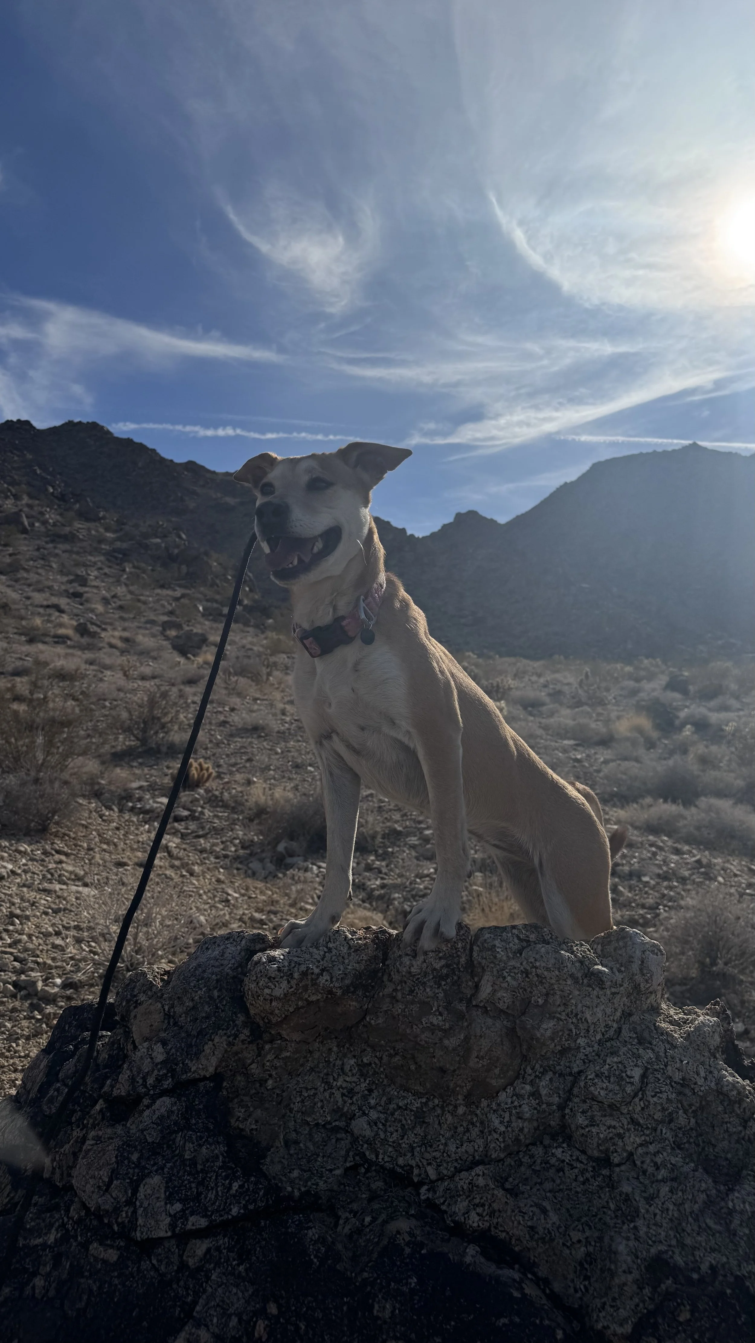 Born at a shelter in Twentynine Palms CA, Archer stole our hearts at a farmer’s market adoption event even though we had no intentions of adding to our pack at the time. He absolutely changed our lives for the better and we can’t imagine life without his ever present smile!
